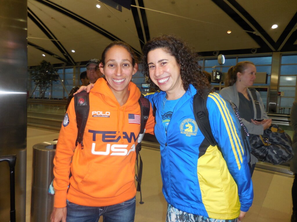 At this point I started trying to pick up swimming and biking to cross train which turned into training for a half ironman in 2016. I was 18 marathons in (16 states) and raced my first half ironman. Don’t worry over the summer I practiced with a sprint and an Olympic triathlon instead of jumping right into a half ironman. Swimming was definitely my weakest point as I have never been a swimmer. I also learned how to clip into my road bike which I set up with aerobars. It was a lot of work training. I did my half ironman in August 2016 with a 5:38. I had a goal to break 6 hours so I was happy with that. But I would not touch my bike for a long time after that race. By the time it was November and I got to NYC marathon (state #18) my body was so tired. I did get to meet Des Linden on my flight to NYC though! It was hard race. It took a lot of mental strength to get through that marathon. I was upset with myself we were not pregnant yet and feeling guilty I take so much time to train. I was also guilty my dad wasn’t there with me. He tried for the lottery for so many years and at this point he had been diagnosed with ALS and was on the decline. I had hoped we could have run a marathon together.