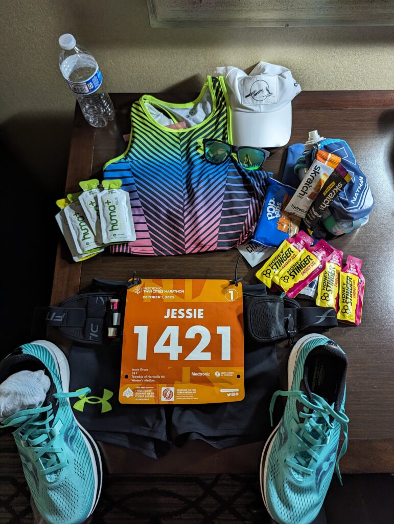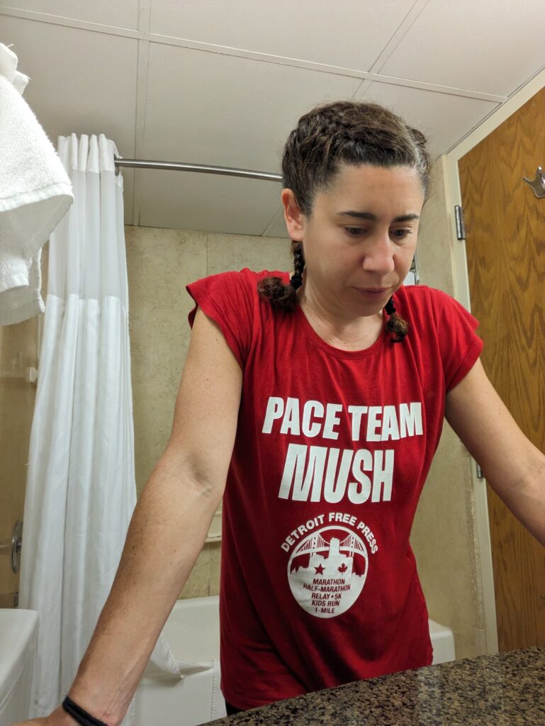Then it was a quiet evening and I started another book. I had trouble sleeping, maybe because of travel or stress of the race but all week I’ve been struggling with sleep. I started thinking about the changes with additional carbs and additional electrolytes. Then I though my electrolytes have sugar in them and I usually only drink water during the day or have electrolytes right after my long run or workout in the morning so I would be fine by bedtime. I have been pounding the electrolytes all day and pretty sure I had 3 packets of them. Luckily I brought some LMNT for Saturday drinking so hoping the extra sodium and no sugar helps. Not that I am against sugar, I still enjoy my Liquid IV but I think having it all day is messing with my sleep and I do not have time for that. I was even extra fatigued I think from the sugar crashes, I wasn’t burning as much energy during the day to utilize the added sugar.